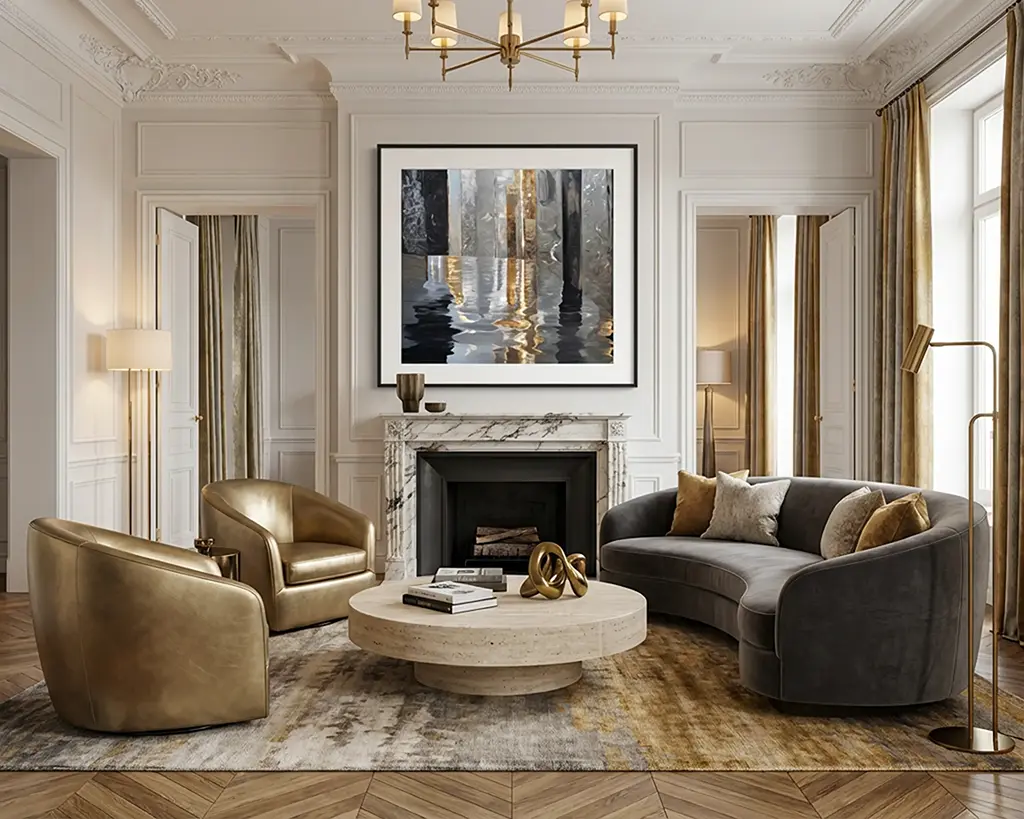 Parfaitement adaptée à un intérieur moderne, un espace professionnel ou un lieu de réception, cette œuvre apporte profondeur, élégance et caractère. Elle séduira les amateurs d’art abstrait atmosphérique, sensibles aux jeux de reflets, à la relation entre structure et fluidité, et à la capacité de la peinture à créer un espace contemplatif et silencieux.