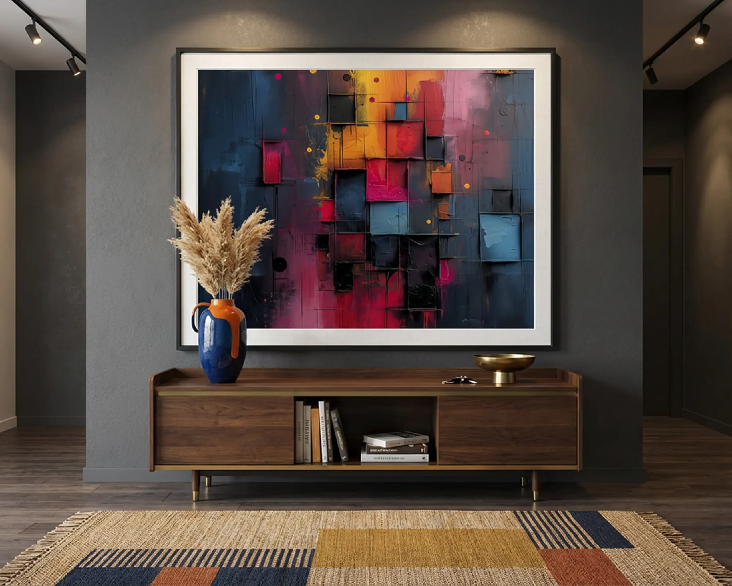 Cette création trouve naturellement sa place dans un intérieur contemporain, un loft, un espace professionnel ou une collection d’art moderne. Elle séduira les amateurs d’art abstrait urbain et matiériste, sensibles à la puissance de la couleur, à la profondeur de la matière et à la capacité de la peinture à évoquer la complexité et l’énergie du monde contemporain.