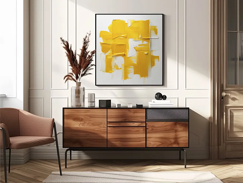 Chaque tableau devient un point d’ancrage visuel : tantôt énergique, tantôt apaisé, tantôt structuré ou organique. Ces abstractions sont pensées pour enrichir l’espace sans jamais l’imposer, en laissant à chacun la liberté de projeter sa propre interprétation.