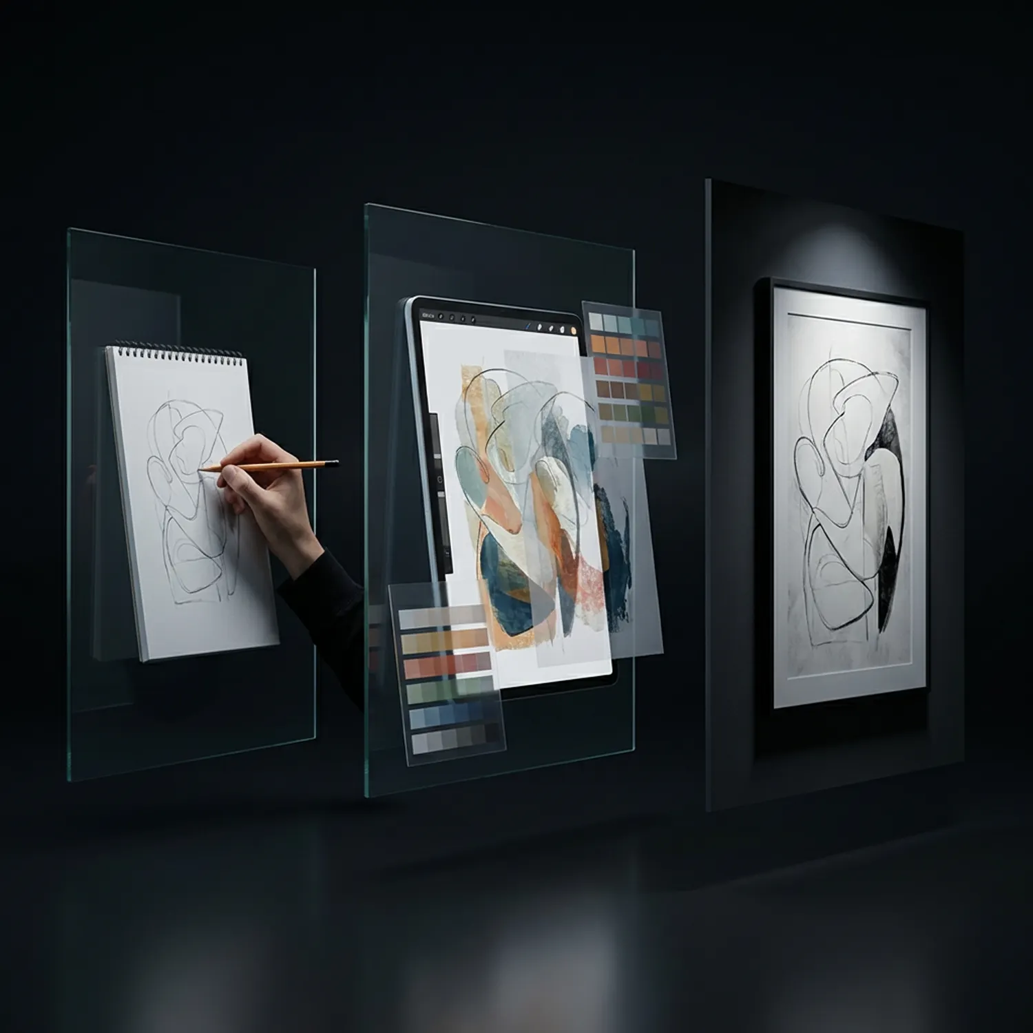 Cette phase de dialogue permet d’identifier les éléments qui donneront naissance à la future œuvre. Elle constitue la base créative sur laquelle sera construit le projet artistique.