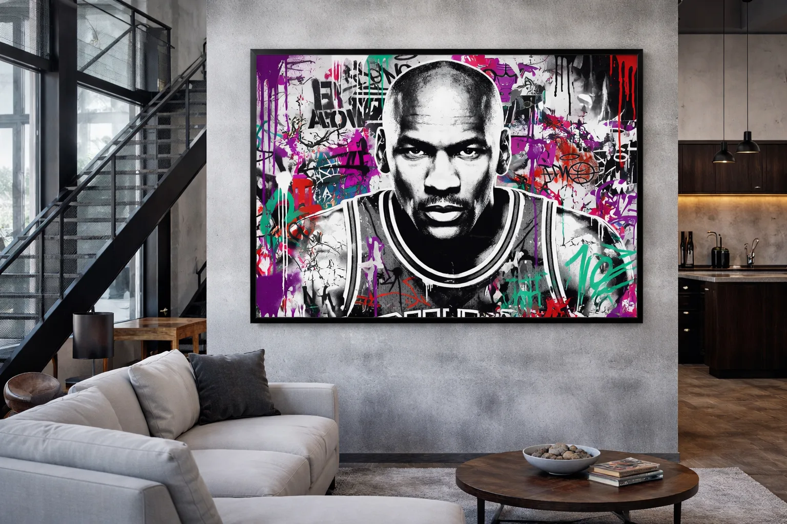 Imprimé sur des supports haut de gamme, ce tableau art contemporain sur mesure et personnalisé restitue fidèlement l’intensité des contrastes, les textures urbaines et l’énergie graphique de l’œuvre, garantissant une pièce durable et à fort impact visuel.