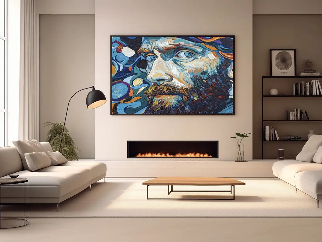 Les tableaux conservent la force symbolique des maîtres tout en s’adaptant aux intérieurs design : salon épuré, bibliothèque d’art, galerie privée ou hôtel de charme.