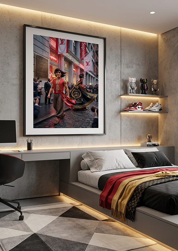 Sorcery Street Couture Duel s’adresse aux amateurs de pop art narratif, de street art conceptuel et de compositions visuelles fortes. L’œuvre trouve naturellement sa place dans un intérieur contemporain, un espace créatif ou un environnement professionnel souhaitant affirmer une identité audacieuse et culturelle.